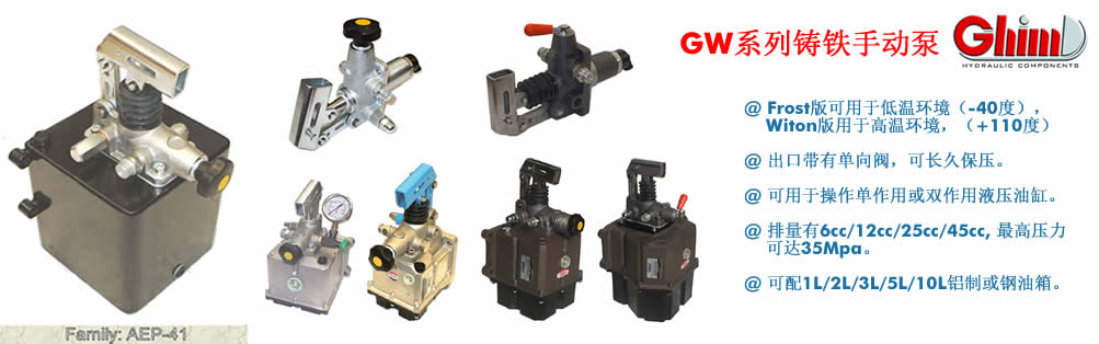 GW系列鑄鐵手動(dòng)泵您當(dāng)前的位置:首頁產(chǎn)品中心液壓手動(dòng)泵意大利Ghim手動(dòng)泵GW系列鑄鐵手動(dòng)泵