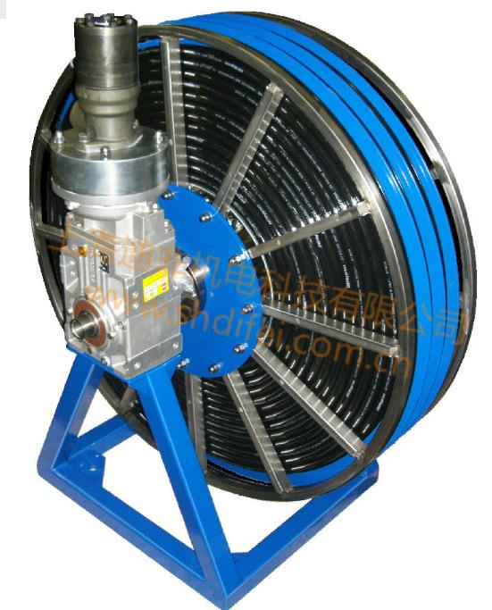 大通徑的和卷繞長度長的軟管卷筒,一般采用電機或液壓馬達配減速機驅(qū)動方案。