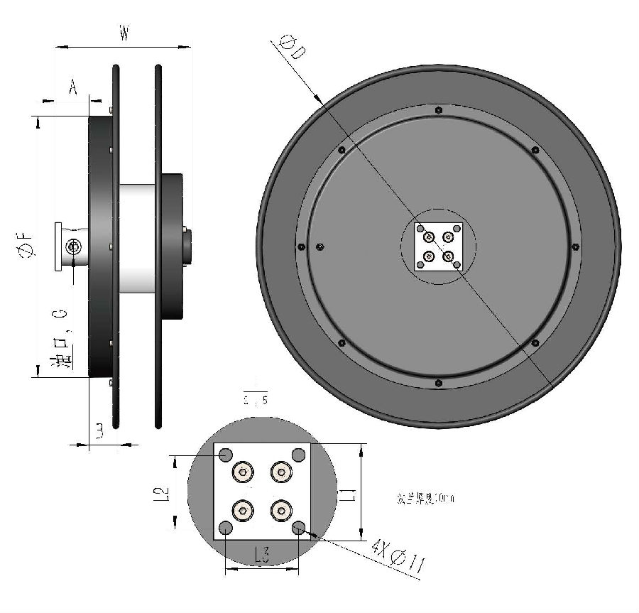 | 1根軟管卷筒 1 Ports hose reel | R:右旋 | Right L:左旋 | Left | 盤子直徑 Flange Diameter | 設(shè)計(jì)號(hào) Design | 軟管內(nèi)徑 Inside Hose | 軟管類型 Hose Type |