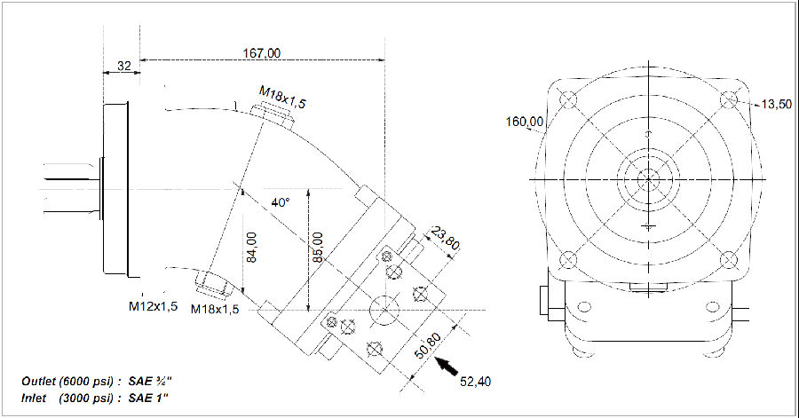 BFPC系列斜軸柱塞泵,采用40度斜軸設(shè)計,排量12cc-108cc,最高壓力可達450bar,ISO法蘭連接,花鍵8×32×36 DIN ISO 14-NF。具體參數(shù)及尺寸如下: